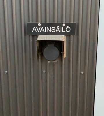 Jätä avain sisäänkäynnin oikealla puolella olevaan avainsäilöön. Säilöön ei saa laittaa isoa avaimenperää, vaan pelkästään avain. Tarkastammme ja tyhjennämme avainsäiliön joka aamu.